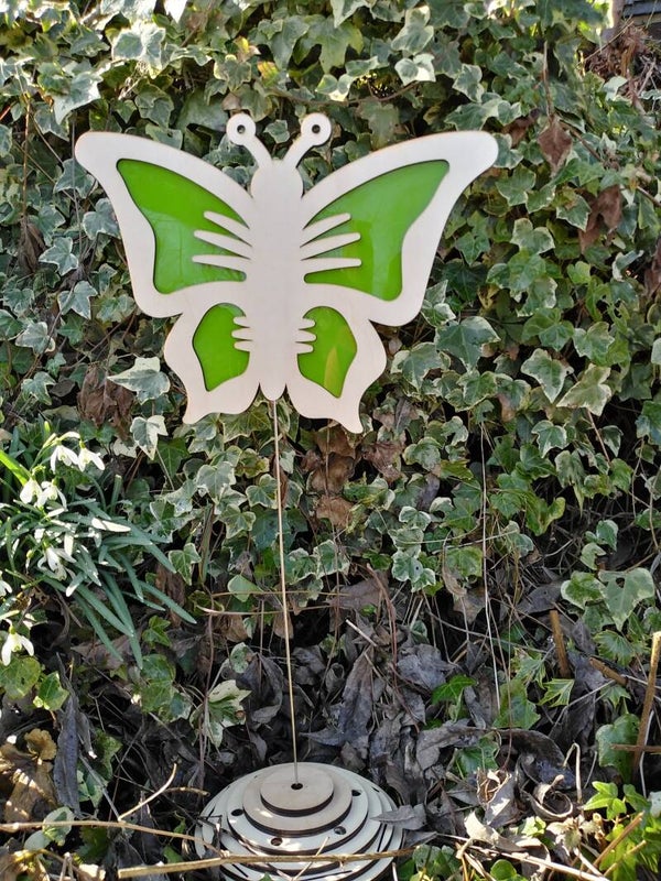 Großer Schmetterling "Grazia" mit durchscheinenden PLA-Einsätzen in verschiedenen Farben (Rot, Grün, Gelb, Weiß-Transparent)